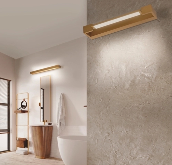 Moderní nástěnné svítidlo DALI ve stylové zlaté barvě kombinuje luxusní vzhled s praktickým osvětlením pro koupelny. Integrované LED světlo 18 W poskytuje jasné, rovnoměrné a teplé světlo 3000 K, ideální pro líčení nebo každodenní péči o vzhled.