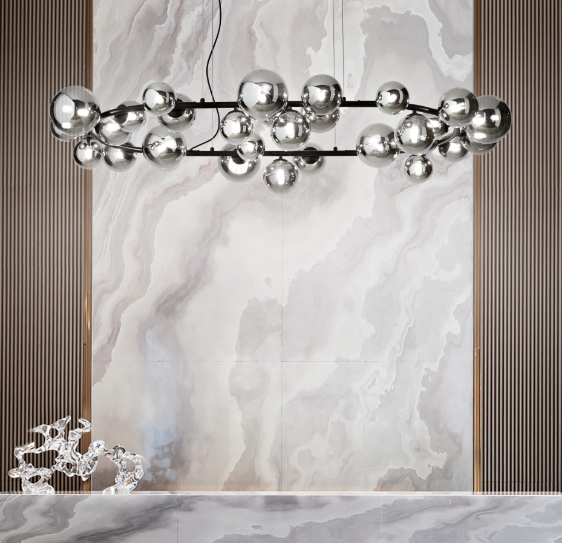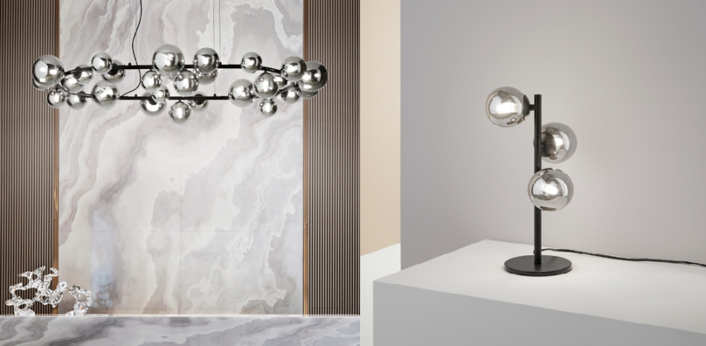 Kolekce Perlage přináší do interiéru jemnost a dekorativní lehkost. Charakteristickým prvkem jsou kulaté tvary připomínající perly, které vytvářejí elegantní a sofistikovaný vzhled. Svítidla jsou doplněna o jemné barevné kombinace – například spojení kovových prvků s bílým nebo opálovým sklem. Výsledkem je příjemné, rozptýlené světlo a designový prvek, který dokáže zjemnit a zároveň ozvláštnit moderní interiér.