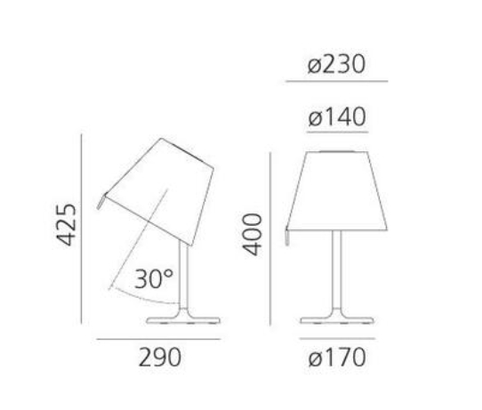 Jednoduchá a elegantní stolní lampička Artemide se svým tradičním vzhledem, přidává funkčnost díky pohyblivému difuzoru, který lze naklápět a otáčet pro směrování světla a vypínači na rameni rámu.
