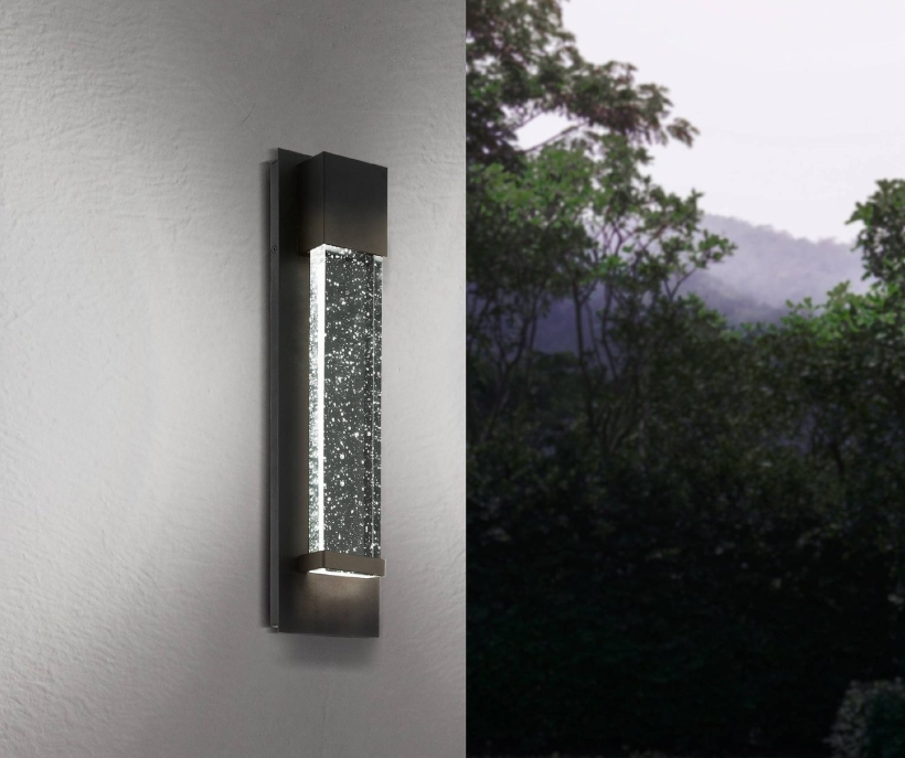 Moderní a designově velmi zajímavé nástěnné LED svítidlo. Jednoduchý tvar, černá základna a sklo s bublinkami. Po rozsvícení vypadá svítidlo magicky, jakoby se rozsvítila hvězdná obloha. Lze instalovat svisle i horizontálně. Umístěte ke vchodovým dveřím, na balkon, terasu, na stěnu domu nebo venkovní posezení.